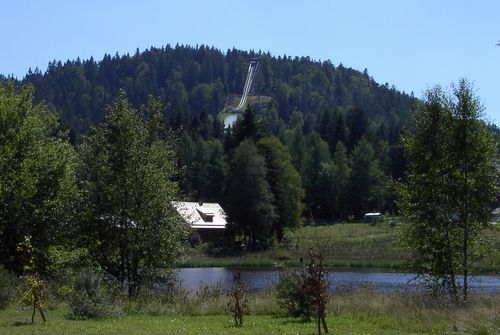 Adlerweiher mit Adlerschanze im Hintergrund